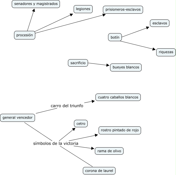 Ejercito romano 2, procesión legiones, sacrificio ???? bueyes blancos, procesión prisioneros-esclavos, botín ???? riquezas, general vencedor símbolos de la victoria rostro pintado de rojo, botín ???? esclavos, general vencedor símbolos de la victoria corona de laurel, general vencedor símbolos de la victoria cetro, general vencedor carro del triunfo cuatro caballos blancos, general vencedor símbolos de la victoria rama de olivo
