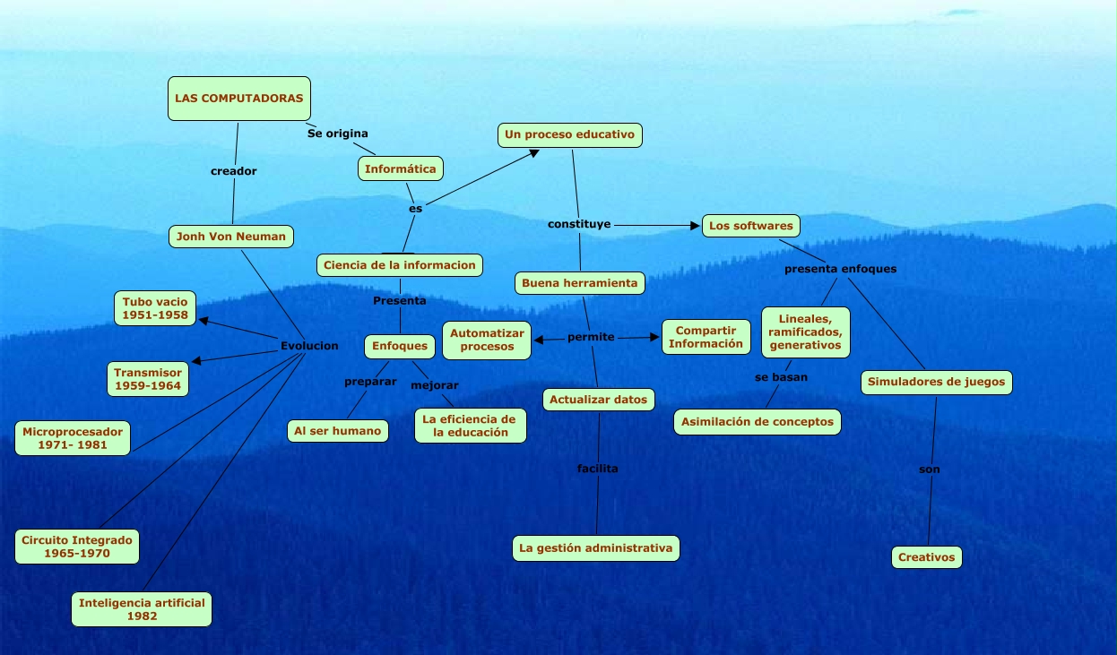 LAS COMPUTADORAS- MAGDIELA, Un proceso educativo constituye Los softwares, Jonh Von Neuman Evolucion Microprocesador 1971- 1981, Los softwares presenta enfoques Lineales, ramificados, generativos, Buena herramienta permite Actualizar datos, Jonh Von Neuman Evolucion Inteligencia artificial 1982, Jonh Von Neuman Evolucion Tubo vacio 1951-1958, Lineales, ramificados, generativos se basan Asimilación de conceptos, Buena herramienta permite Automatizar procesos, Enfoques preparar Al ser humano, Simuladores de juegos son Creativos