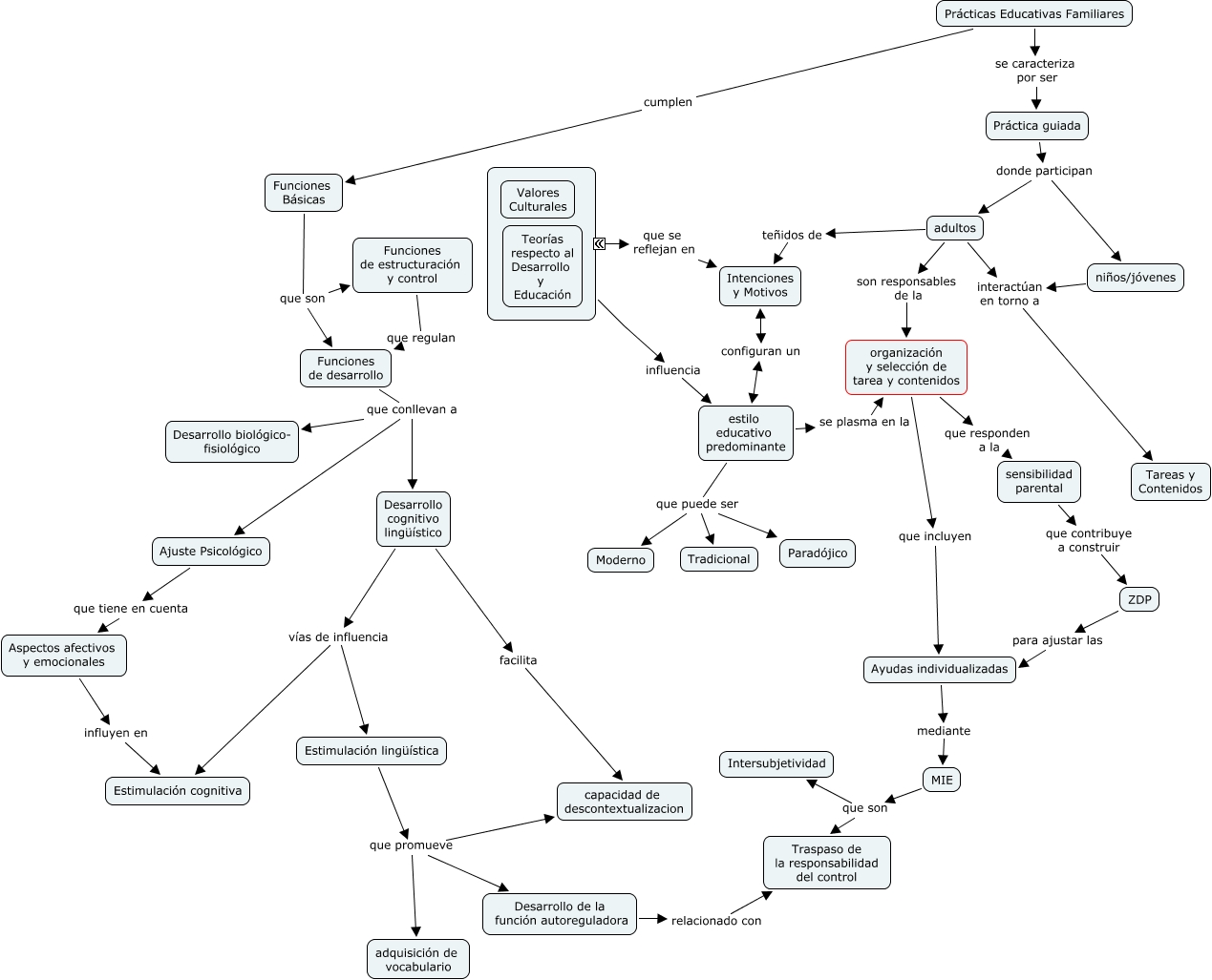 Mapa NT3, sensibilidad parental que contribuye a construir ZDP, Funciones de desarrollo que conllevan a Ajuste Psicológico, ZDP para ajustar las Ayudas individualizadas, Estimulación lingüística que promueve Desarrollo de la función autoreguladora, MIE que son Traspaso de la responsabilidad del control, adultos interactúan en torno a Tareas y Contenidos, Funciones de desarrollo que conllevan a Desarrollo cognitivo lingüístico, Funciones Básicas que son Funciones de estructuración y control, Desarrollo cognitivo lingüístico vías de influencia Estimulación cognitiva, ???? que se reflejan en Intenciones y Motivos