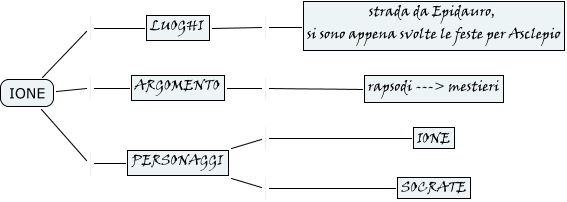 IONE, PERSONAGGI IONE, ARGOMENTO rapsodi ---> mestieri, PERSONAGGI SOCRATE, IONE PERSONAGGI, IONE ARGOMENTO, LUOGHI strada da Epidauro, si sono appena svolte le feste per Asclepio, IONE LUOGHI