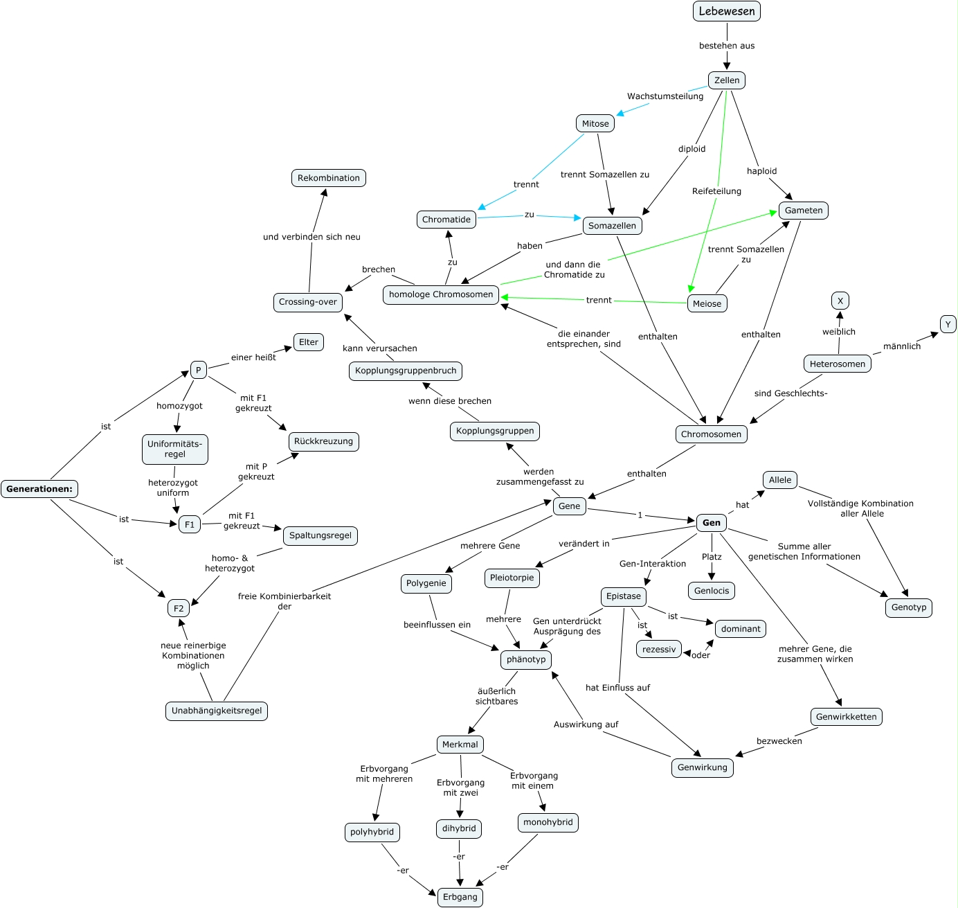 Begriffe Genetik Jannike überarbeitet, F1 mit P gekreuzt Rückkreuzung, Gen Gen-Interaktion Epistase, Gameten enthalten Chromosomen, Generationen: ist F2, Polygenie beeinflussen ein phänotyp, Unabhängigkeitsregel freie Kombinierbarkeit der Gene, Meiose trennt Somazellen zu Gameten, Heterosomen weiblich X, Gene werden zusammengefasst zu Kopplungsgruppen, monohybrid -er Erbgang