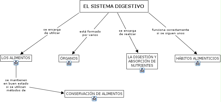INICIO TEMA 2, EL SISTEMA DIGESTIVO funciona correctamente si se siguen unos HÁBITOS ALIMENTICIOS, EL SISTEMA DIGESTIVO está formado por varios ÓRGANOS, EL SISTEMA DIGESTIVO se encarga de utilizar LOS ALIMENTOS, EL SISTEMA DIGESTIVO se encarga de realizar LA DIGESTIÓN Y ABSORCIÓN DE NUTRIENTES, LOS ALIMENTOS se mantienen en buen estado si se utilizan métodos de CONSERVACIÓN DE ALIMENTOS