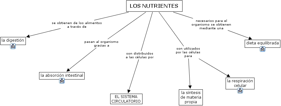 INICIO TEMA 3, LOS NUTRIENTES se obtienen de los alimentos a través de la digestión, LOS NUTRIENTES necesarios para el organismo se obtienen mediante una dieta equilibrada, LOS NUTRIENTES son utilizados por las células para la respiración celular, LOS NUTRIENTES son distribuidos a las células por EL SISTEMA CIRCULATORIO, LOS NUTRIENTES son utilizados por las células para la síntesis de materia propia, LOS NUTRIENTES pasan al organismo gracias a la absorción intestinal