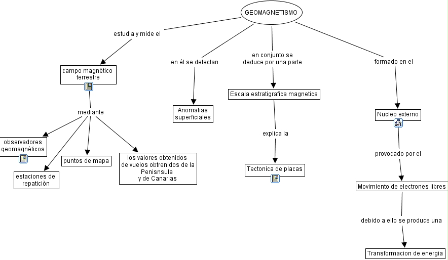 Movimiento de electrones libres debido a ello se produce una Transformacion de energia, GEOMAGNETISMO en conjunto se deduce por una parte Escala estratigrafica magnetica, GEOMAGNETISMO en �l se detectan Anomalias superficiales, campo magn�tico terrestre mediante estaciones de repatici�n, campo magn�tico terrestre mediante los valores obtenidos de vuelos obtrenidos de la Penisnsula y de Canarias, campo magn�tico terrestre mediante observadores geomagn�ticos, campo magn�tico terrestre mediante puntos de mapa, Escala estratigrafica magnetica explica la Tectonica de placas, Nucleo externo provocado por el Movimiento de electrones libres, GEOMAGNETISMO formado en el Nucleo externo, GEOMAGNETISMO estudia y mide el campo magn�tico terrestre