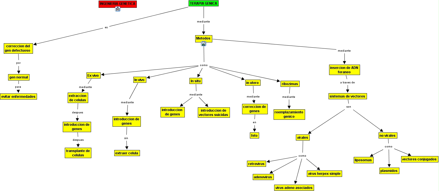 terapia genica, gen normal para evitar enfermedades, In situ mediante introduccion de genes, in utero mediante correccion de genes, no virales como plasmidos, virales como adenovirus, insercion de ADN foraneo a traves de sistemas de vectores, In situ mediante introduccion de vectores suicidas, Metodos como Ex vivo, virales como virus adeno asociados, virales como retrovirus