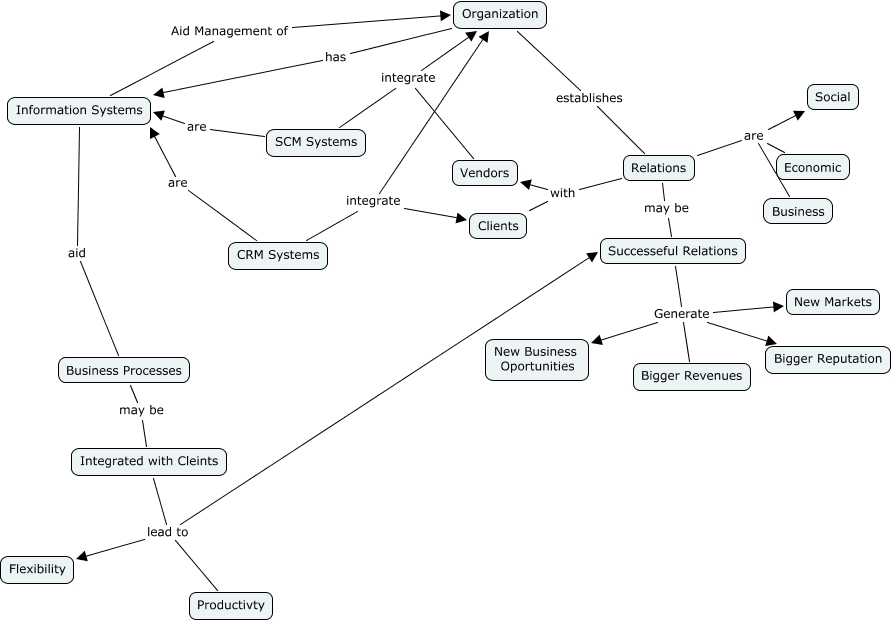Sem título 2, Relations may be Successeful Relations, Business Processes may be Integrated with Cleints, Successeful Relations Generate New Business Oportunities, Relations are Business, CRM Systems integrate Clients, Successeful Relations Generate Bigger Reputation, Relations with Vendors, Integrated with Cleints lead to Productivty, SCM Systems are Information Systems, CRM Systems integrate Organization