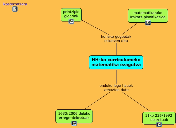 haur_hezkuntzako_zikloko_curriculuma, HH-ko curriculumeko matematika ezagutza honako gogoetak eskatzen ditu printzipio gidariak, HH-ko curriculumeko matematika ezagutza ondoko lege hauek zehazten dute 11ko 236/1992 dekretuak, HH-ko curriculumeko matematika ezagutza honako gogoetak eskatzen ditu matematikarako irakats-planifikazioa, HH-ko curriculumeko matematika ezagutza ondoko lege hauek zehazten dute 1630/2006 delako errege-dekretuak
