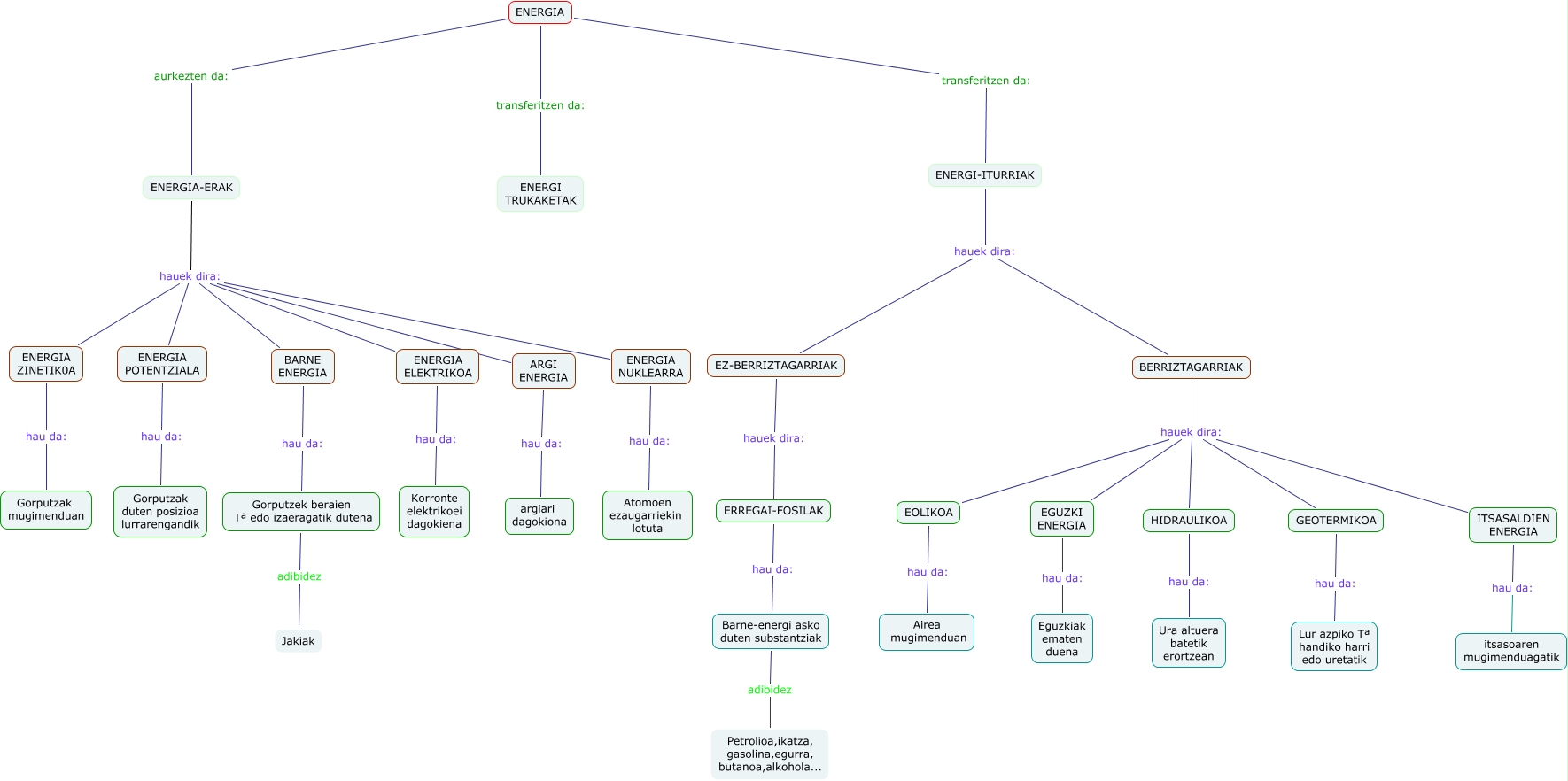 2c Mikel Iker, EGUZKI ENERGIA hau da: Eguzkiak ematen duena, ENERGIA-ERAK hauek dira: ARGI ENERGIA, BERRIZTAGARRIAK hauek dira: GEOTERMIKOA, ENERGI-ITURRIAK hauek dira: EZ-BERRIZTAGARRIAK, ENERGIA aurkezten da: ENERGIA-ERAK, EOLIKOA hau da: Airea mugimenduan, ENERGIA transferitzen da: ENERGI-ITURRIAK, ENERGIA-ERAK hauek dira: ENERGIA ELEKTRIKOA, EZ-BERRIZTAGARRIAK hauek dira: ERREGAI-FOSILAK, GEOTERMIKOA hau da: Lur azpiko Tª handiko harri edo uretatik