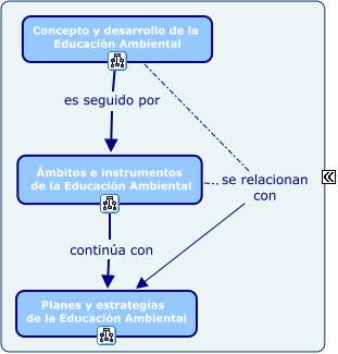 contenidos, Concepto y desarrollo de la Educación Ambiental se relacionan con Planes y estrategias de la Educación Ambiental, Ámbitos e instrumentos de la Educación Ambiental continúa con Planes y estrategias de la Educación Ambiental, Ámbitos e instrumentos de la Educación Ambiental se relacionan con Planes y estrategias de la Educación Ambiental, Concepto y desarrollo de la Educación Ambiental es seguido por Ámbitos e instrumentos de la Educación Ambiental