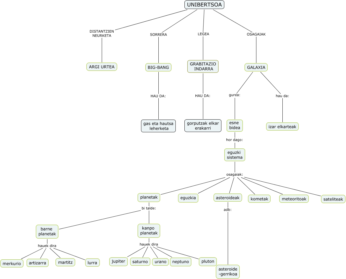 1c patricia eta asier r, eguzki sistema osagaiak: meteoritoak, GRABITAZIO INDARRA HAU DA: gorputzak elkar erakarri, BIG-BANG HAU DA: gas eta hautsa leherketa, eguzki sistema osagaiak: kometak, UNIBERTSOA SORRERA BIG-BANG, eguzki sistema osagaiak: eguzkia, kanpo planetak hauek dira neptuno, planetak bi talde: barne planetak, esne bidea hor dago: eguzki sistema, GALAXIA gurea: esne bidea
