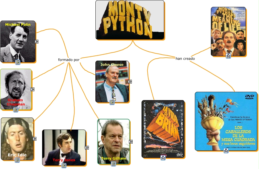 Monty Python, Terry Jones estudio en Oxford, Graham Chapman formado por Terry Jones, Graham Chapman fue Actor, Graham Chapman estudio Medicina, John Cleese formado por Michael Palin, Terry Jones ha dirigido Erik el Vikingo, Michael Palin nacio en Yorkshire, Michael Palin ha actuado en Un Pez llamado Wanda, Graham Chapman nacio en Leicester, John Cleese ha actuado en 007 Casino Royale