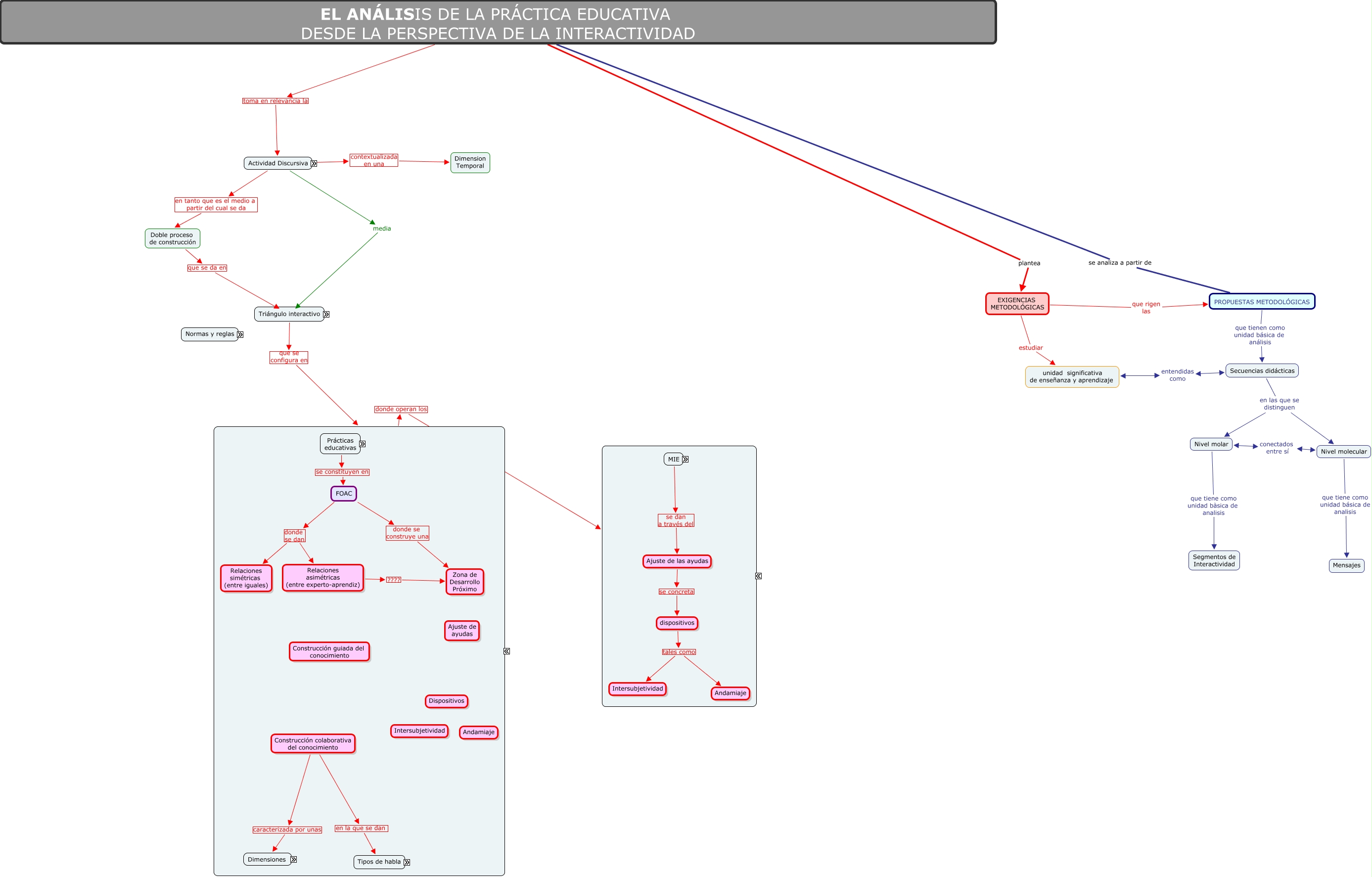 MAPAINTERACTIVIDADNT2.1revisión2, Igualdad su combinación da lugar a Colaboración ente iguales, EXIGENCIAS METODOLÓGICAS estudiar unidad significativa de enseñanza y aprendizaje, Actividad Discursiva media Actividad conjunta, aprendiz relación asimétrica enseñante, unidad significativa de enseñanza y aprendizaje entendidas como Secuencias didácticas, Prácticas Educativas donde operan los Mecanismos de Influencica Educativa, PROPUESTAS METODOLÓGICAS que tienen como unidad básica de análisis Secuencias didácticas, EL ANÁLISIS DE LA PRÁCTICA EDUCATIVA DESDE LA PERSPECTIVA DE LA INTERACTIVIDAD toma en relevancia la Actividad Discursiva, Prácticas educativas se constituyen en FOAC, Construcción colaborativa del conocimiento caracterizada por unas Dimensiones