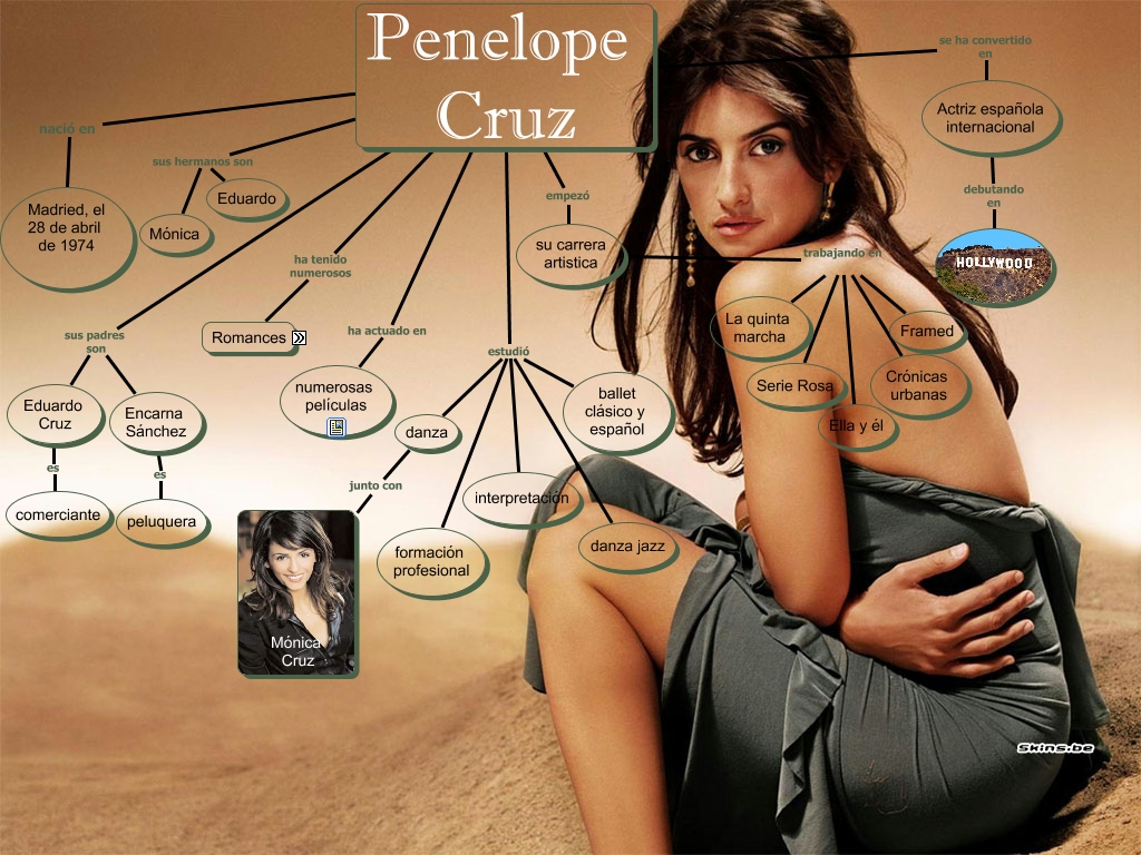 pe, Penelope Cruz sus padres son Encarna Sánchez, ha tenido romances con Matthew McConaughey, Penelope Cruz sus hermanos son Mónica, Tom Cruise su romance duró 3 años, Penelope Cruz estudió danza jazz, la película Sahara donde eran protagonistas, ha tenido romances con Damon y Cage, Penelope Cruz sus padres son Eduardo Cruz, su carrera artistica trabajando en Framed, su carrera artistica trabajando en La quinta marcha