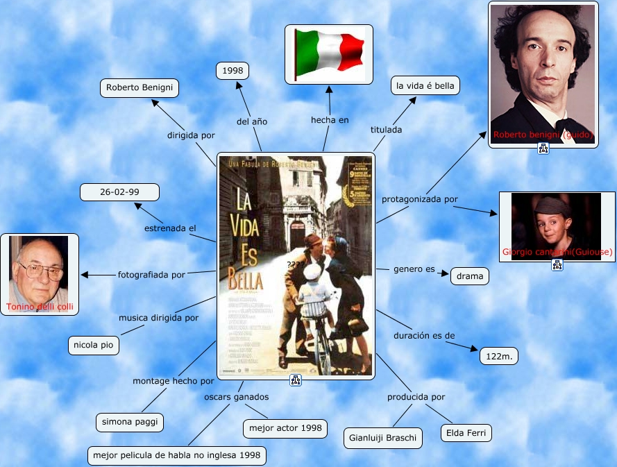 LA VIDA ES BELLA MAPA PRINCIPAL, ???? dirigida por Roberto Benigni, ???? producida por Elda Ferri, ???? genero es drama, ???? hecha en , ???? del año 1998, ???? estrenada el 26-02-99, ???? musica dirigida por nicola pio, ???? duración es de 122m., ???? producida por Gianluiji Braschi, ???? titulada la vida é bella
