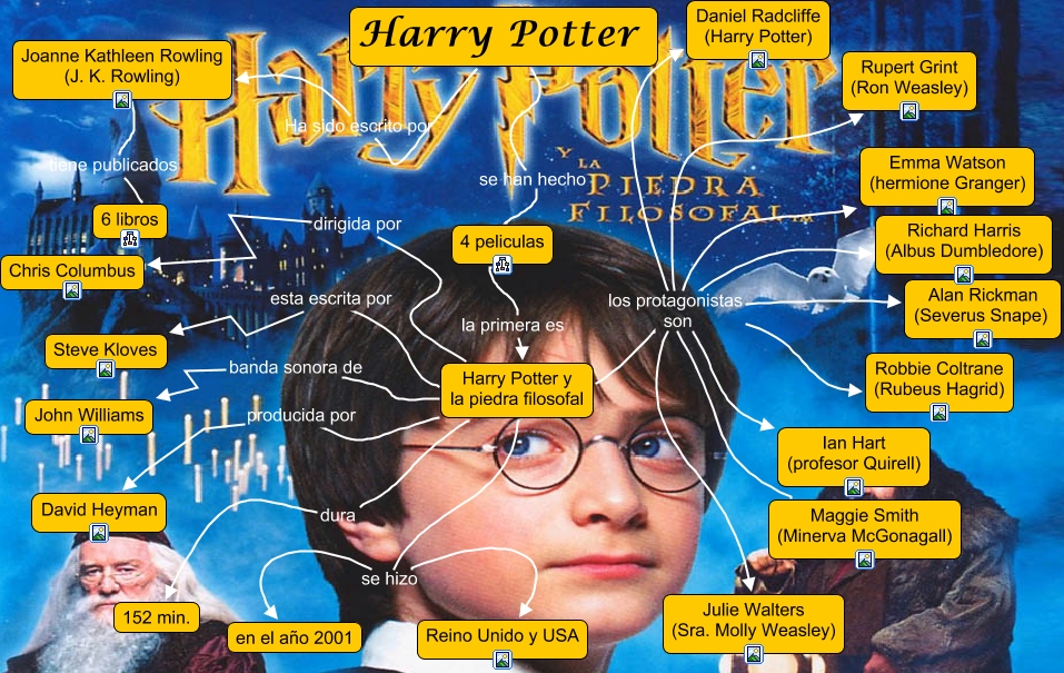 Harry Potter, Harry Potter y la piedra filosofal los protagonistas son Rupert Grint (Ron Weasley), Harry Potter y la piedra filosofal los protagonistas son Alan Rickman (Severus Snape), Maggie Smith (Minerva McGonagall) los protagonistas son Daniel Radcliffe (Harry Potter), Harry Potter Ha sido escrito por Joanne Kathleen Rowling (J. K. Rowling), Joanne Kathleen Rowling (J. K. Rowling) tiene publicados 6 libros, Maggie Smith (Minerva McGonagall) los protagonistas son Robbie Coltrane (Rubeus Hagrid), Harry Potter y la piedra filosofal los protagonistas son Emma Watson (hermione Granger), Harry Potter y la piedra filosofal se hizo Reino Unido y USA, Harry Potter y la piedra filosofal esta escrita por Steve Kloves, Maggie Smith (Minerva McGonagall) los protagonistas son Ian Hart (profesor Quirell)