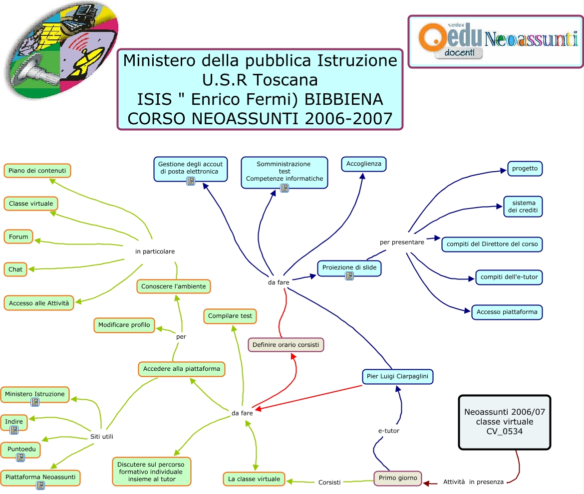 Neoassunti06-07 CV_0534, Proiezione di slide per presentare compiti dell'e-tutor, Proiezione di slide per presentare progetto, Accedere alla piattaforma Siti utili Ministero Istruzione, Definire orario corsisti da fare Somministrazione test Competenze informatiche, Conoscere l'ambiente in particolare Classe virtuale, Proiezione di slide per presentare sistema dei crediti, Accedere alla piattaforma per Modificare profilo, Pier Luigi Ciarpaglini da fare Compilare test, Primo giorno e-tutor Pier Luigi Ciarpaglini, Accedere alla piattaforma Siti utili Puntoedu