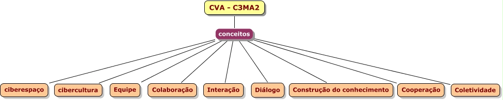 Este Mapa Conceitual tem informações relacionadas a: C3Ma2_v1, CVA - C3MA2 conceitos Diálogo, CVA - C3MA2 conceitos cibercultura, CVA - C3MA2 conceitos Construção do conhecimento, CVA - C3MA2 conceitos Coletividade, CVA - C3MA2 conceitos ciberespaço, CVA - C3MA2 conceitos Colaboração, CVA - C3MA2 conceitos Interação, CVA - C3MA2 conceitos Cooperação, CVA - C3MA2 conceitos Equipe