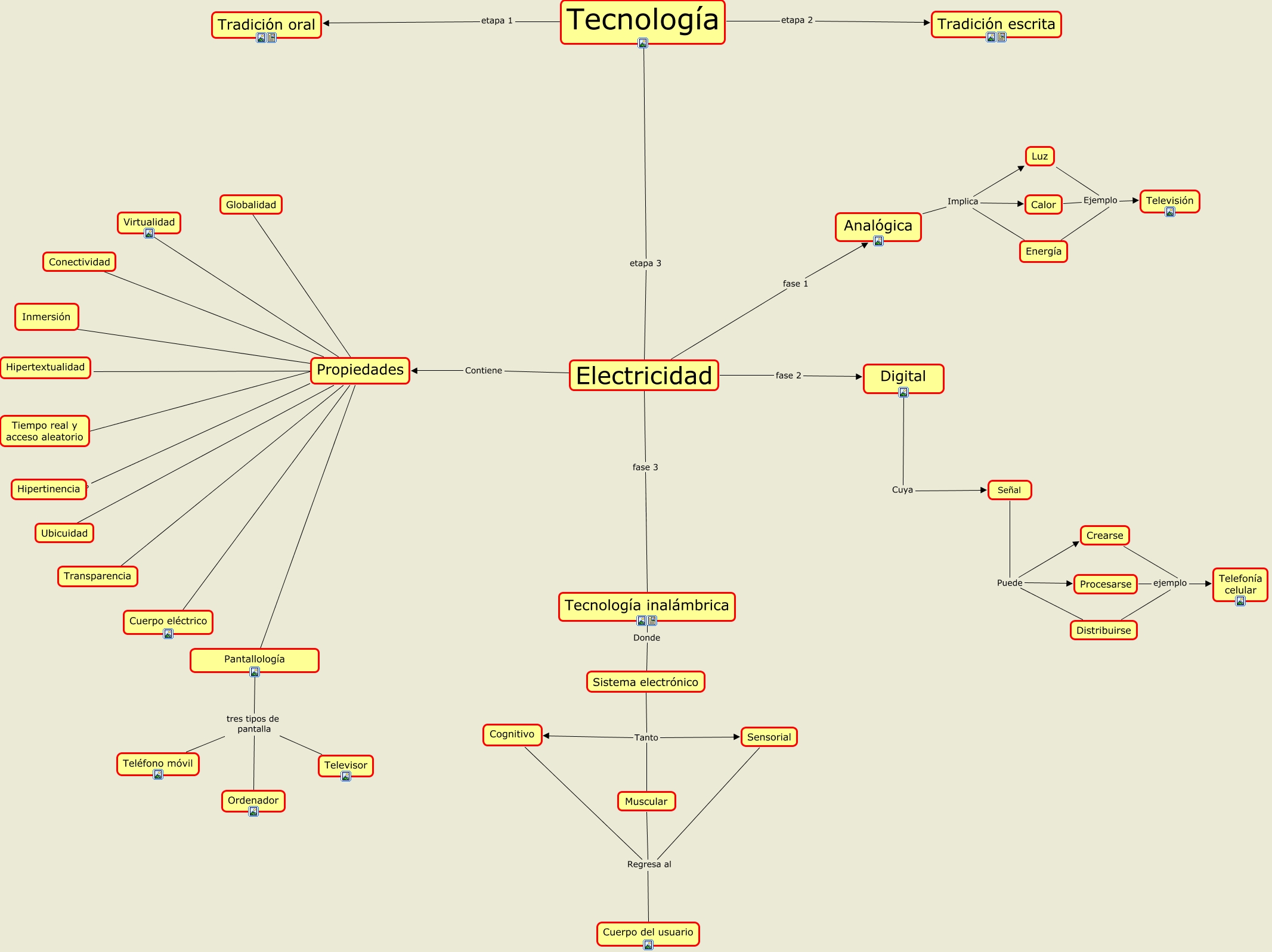 Los sesgos de la electricidad, Propiedades ???? Inmersión, Tecnología etapa 3 Electricidad, Propiedades ???? Cuerpo eléctrico, Cognitivo Regresa al Cuerpo del usuario, Sistema electrónico Tanto Sensorial, Propiedades ???? Hipertextualidad, Procesarse ejemplo Telefonía celular, Sistema electrónico Tanto Cognitivo, Crearse ejemplo Telefonía celular, Muscular Regresa al Cuerpo del usuario
