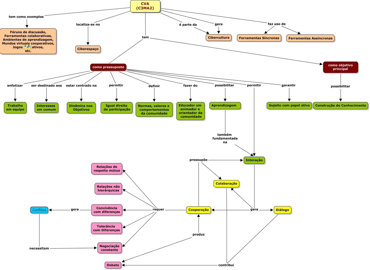 C3Ma2_V8, Colaboração contribui Debate, CVA (C3MA2) tem como objetivo principal, como pressuposto possibilitar Aprendizagem, Cooperação produz Debate, Cooperação requer Tolerância com Diferenças, como pressuposto permitir Igual direito de participação, Cooperação requer Relações não hierárquicas, Diálogo contribui Debate, Cooperação pressupõe Colaboração, Convivência com diferenças gera Conflitos