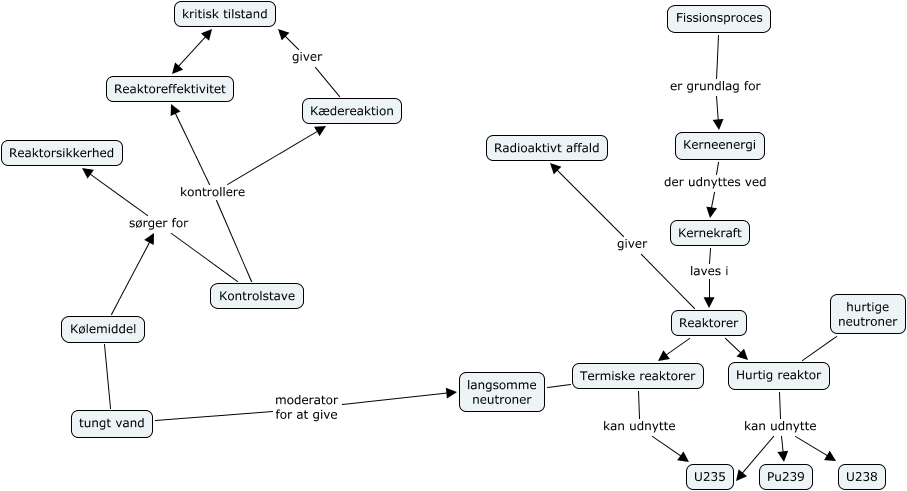 Kerneenergi, Reaktorer Termiske reaktorer, kritisk tilstand Reaktoreffektivitet, Termiske reaktorer kan udnytte U235, Reaktorer Hurtig reaktor, Hurtig reaktor kan udnytte U235, Kædereaktion giver kritisk tilstand, Termiske reaktorer langsomme neutroner, Reaktorer giver Radioaktivt affald, Hurtig reaktor kan udnytte Pu239, tungt vand moderator for at give langsomme neutroner