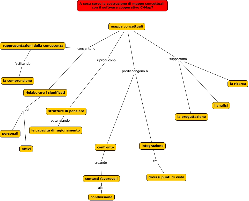 mappe concettuali, mappe concettuali riproducono strutture di pensiero, rappresentazioni della conoscenza facilitando la comprensione, mappe concettuali consentono rielaborare i significati, mappe concettuali supportano la ricerca, contesti favorevoli alla condivisione, mappe concettuali predispongono a confronto, strutture di pensiero potenziando le capacità di ragionamento, rielaborare i significati in modi personali, confronto creando contesti favorevoli, mappe concettuali predispongono a integrazione