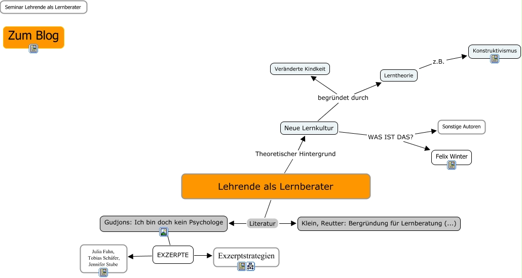 Struktur, Neue Lernkultur WAS IST DAS? Felix Winter, Neue Lernkultur begründet durch Lerntheorie, Lehrende als Lernberater Literatur Gudjons: Ich bin doch kein Psychologe, Neue Lernkultur begründet durch Veränderte Kindkeit, Gudjons: Ich bin doch kein Psychologe EXZERPTE Exzerptstrategien, Neue Lernkultur WAS IST DAS? Sonstige Autoren, Lehrende als Lernberater Theoretischer Hintergrund Neue Lernkultur, Lerntheorie z.B. Konstruktivismus, Lehrende als Lernberater Literatur Klein, Reutter: Bergründung für Lernberatung (...), Gudjons: Ich bin doch kein Psychologe EXZERPTE Julia Fahn, Tobias Schäfer, Jennifer Stube