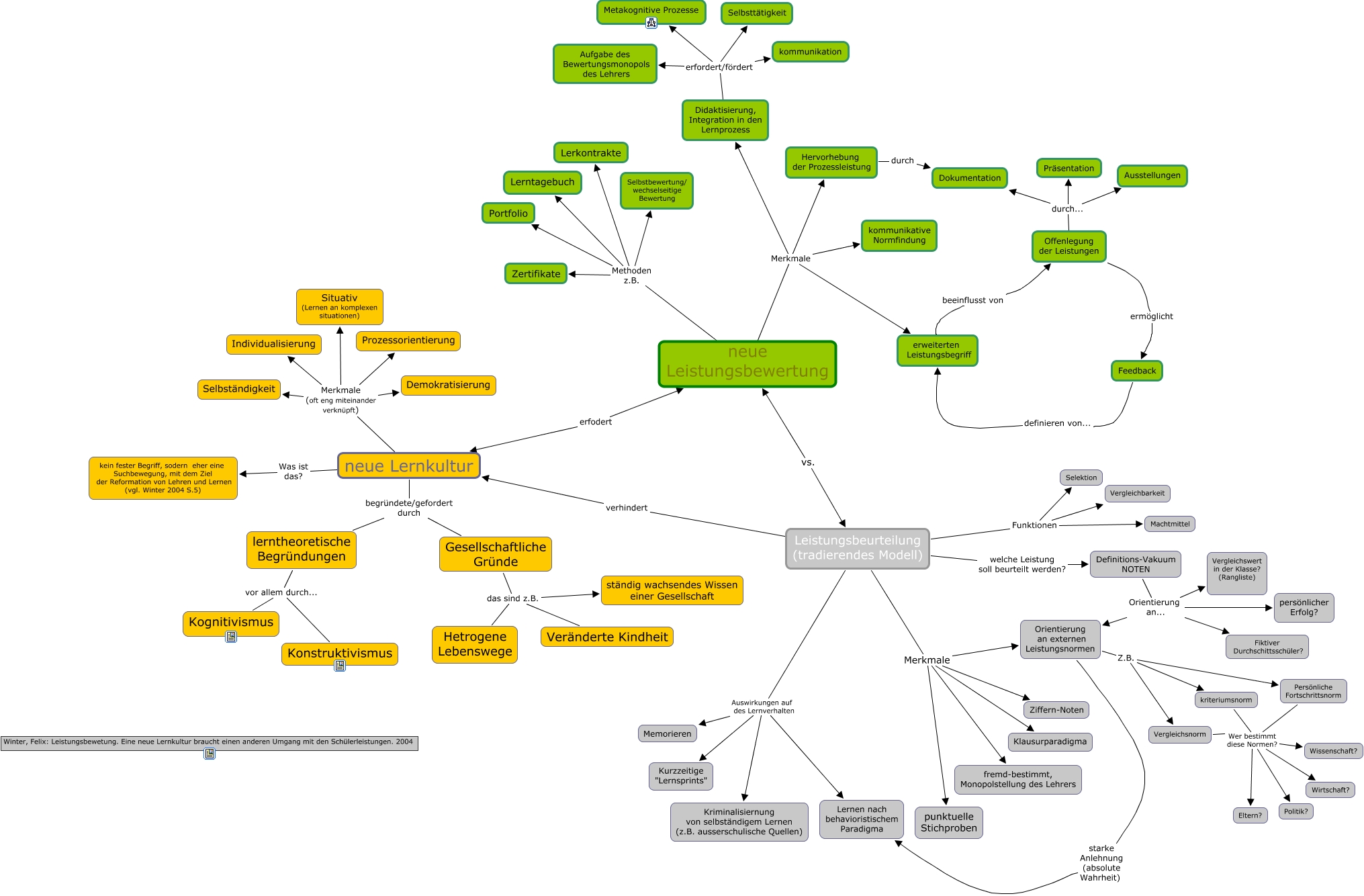 This Concept Map, created with IHMC CmapTools, has information related to: leistungsbewertung, Gesellschaftliche Gründe das sind z.B. Veränderte Kindheit, Leistungsbeurteilung (tradierendes Modell) Merkmale Orientierung an externen Leistungsnormen, neue Leistungsbewertung Merkmale kommunikative Normfindung, lerntheoretische Begründungen vor allem durch... Konstruktivismus, Leistungsbeurteilung (tradierendes Modell) Auswirkungen auf des Lernverhalten Kurzzeitige "Lernsprints", Didaktisierung, Integration in den Lernprozess erfordert/fördert Aufgabe des Bewertungsmonopols des Lehrers, kriteriumsnorm Wer bestimmt diese Normen? Eltern?, Persönliche Fortschrittsnorm Wer bestimmt diese Normen? Eltern?, Leistungsbeurteilung (tradierendes Modell) Merkmale Klausurparadigma, Didaktisierung, Integration in den Lernprozess erfordert/fördert Metakognitive Prozesse, neue Leistungsbewertung Methoden z.B. Lerkontrakte, Orientierung an externen Leistungsnormen Z.B. Vergleichsnorm, neue Leistungsbewertung Methoden z.B. Zertifikate, erweiterten Leistungsbegriff beeinflusst von Offenlegung der Leistungen, neue Leistungsbewertung Merkmale Didaktisierung, Integration in den Lernprozess, neue Leistungsbewertung Merkmale Hervorhebung der Prozessleistung, neue Lernkultur Merkmale (oft eng miteinander verknüpft) Demokratisierung, neue Lernkultur Merkmale (oft eng miteinander verknüpft) Prozessorientierung, neue Lernkultur Merkmale (oft eng miteinander verknüpft) Selbständigkeit, Offenlegung der Leistungen durch... Dokumentation