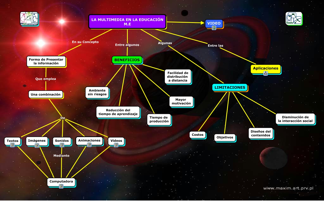 Este Cmap, tiene información relacionada con: LOS MULTIMEDIOS EN EDUCACIÓN, BENEFICIOS ???? Tiempo de producción, BENEFICIOS ???? Facilidad de distribución a distancia, Textos ???? Computadora, BENEFICIOS ???? Ambiente sin riesgos, BENEFICIOS ???? Mayor motivación, BENEFICIOS ???? Reducción del tiempo de aprendizaje, LA MULTIMEDIA EN LA EDUCACIÓN M.E ???? VIDEO, Una combinación De Sonidos, Una combinación De Animaciones, Imágenes ???? Computadora, LIMITACIONES ???? Disminución de la interacción social, Sonidos Mediante Computadora, LA MULTIMEDIA EN LA EDUCACIÓN M.E Entre algunos BENEFICIOS, BENEFICIOS ???? Reducción del tiempo de aprendizaje, Una combinación De Imágenes, LA MULTIMEDIA EN LA EDUCACIÓN M.E En su Concepto Forma de Presentar la información, LIMITACIONES ???? Costos, LIMITACIONES ???? Objetivos, LIMITACIONES ???? Diseños del contenidos, LA MULTIMEDIA EN LA EDUCACIÓN M.E Entre las Aplicaciones
