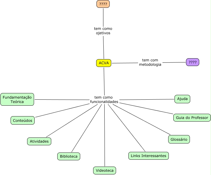 ObjetoV1, ACVA tem como funcionalidades Biblioteca, ACVA tem como funcionalidades Links Interessantes, ACVA tem com metodologia ????, ACVA tem como funcionalidades Guia do Professor, ACVA tem como ojetivos ????, ACVA tem como funcionalidades Videoteca, ACVA tem como funcionalidades Atividades, ACVA tem como funcionalidades Conteúdos, ACVA tem como funcionalidades Fundamentação Teórica, ACVA tem como funcionalidades Ajuda