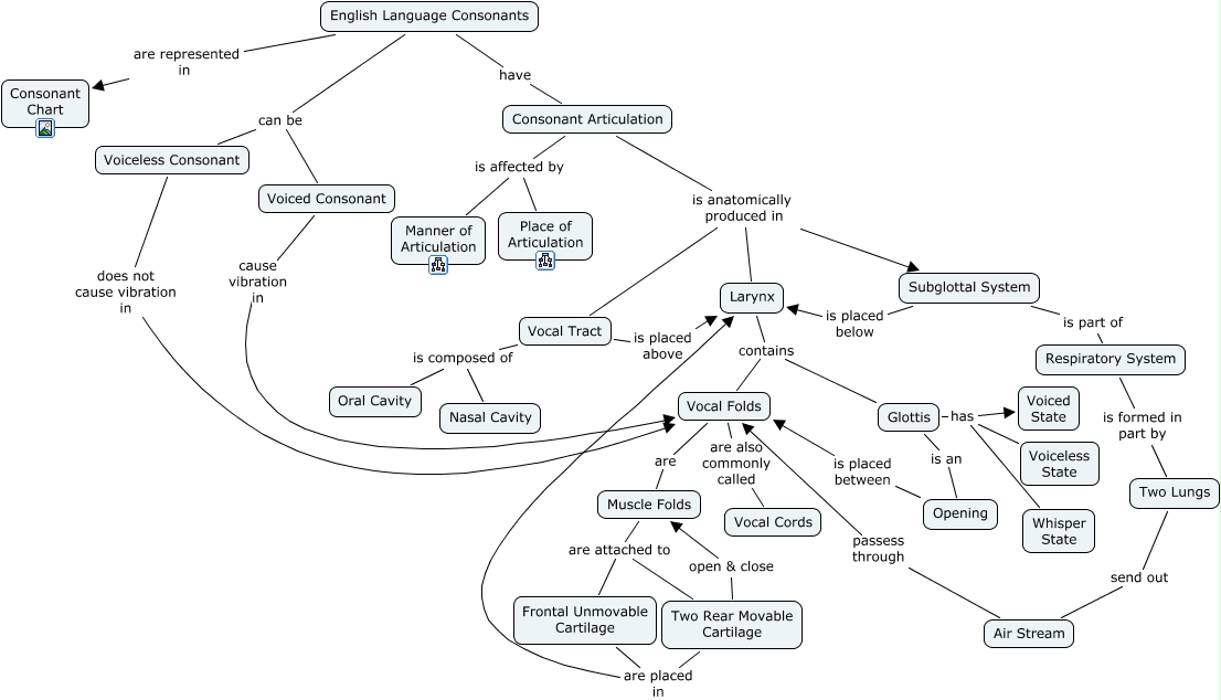 English Language Consonants, Vocal Folds are also commonly called Vocal Cords, Glottis has Voiced State, Two Rear Movable Cartilage open & close Muscle Folds, Respiratory System is formed in part by Two Lungs, Two Rear Movable Cartilage are placed in Larynx, Vocal Folds are Muscle Folds, Vocal Tract is composed of Oral Cavity, English Language Consonants can be Voiced Consonant, Two Lungs send out Air Stream, Opening is placed between Vocal Folds
