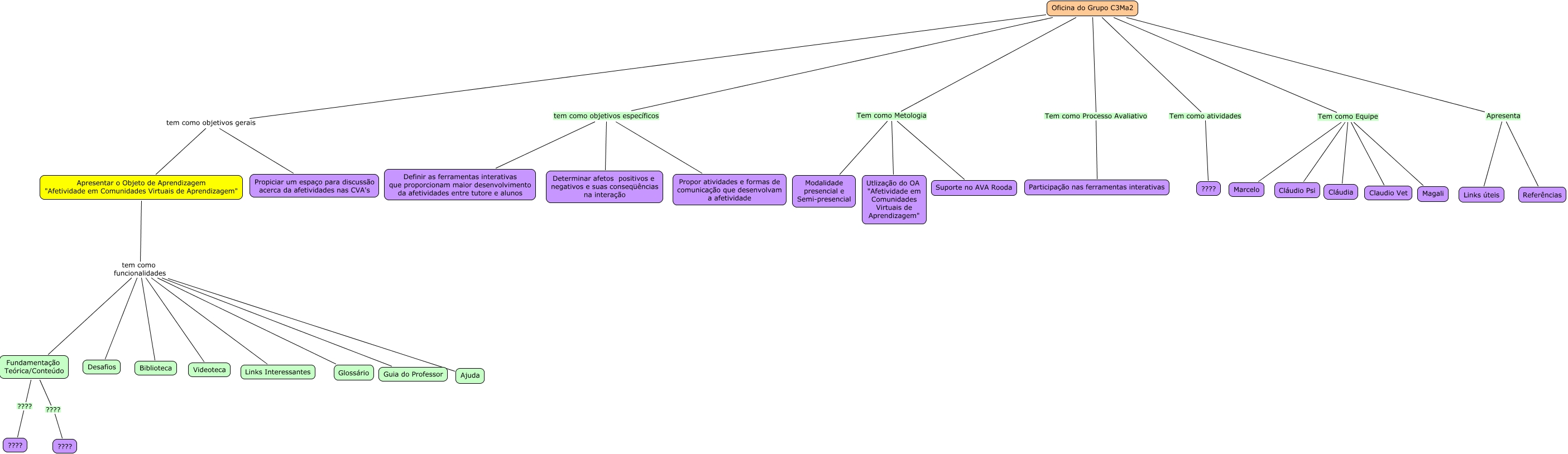 ObjetoV2, Apresentar o Objeto de Aprendizagem "Afetividade em Comunidades Virtuais de Aprendizagem" tem como funcionalidades Glossário, Fundamentação Teórica/Conteúdo ???? ????, Apresentar o Objeto de Aprendizagem "Afetividade em Comunidades Virtuais de Aprendizagem" tem como objetivos gerais Oficina do Grupo C3Ma2, Oficina do Grupo C3Ma2 tem como objetivos específicos Determinar afetos positivos e negativos e suas conseqüências na interação, Apresentar o Objeto de Aprendizagem "Afetividade em Comunidades Virtuais de Aprendizagem" tem como funcionalidades Desafios, Oficina do Grupo C3Ma2 Tem como Metologia Modalidade presencial e Semi-presencial, Oficina do Grupo C3Ma2 Tem como Equipe Cláudio Psi, Fundamentação Teórica/Conteúdo ???? ????, Apresentar o Objeto de Aprendizagem "Afetividade em Comunidades Virtuais de Aprendizagem" tem como funcionalidades Guia do Professor, Oficina do Grupo C3Ma2 Tem como Equipe Marcelo