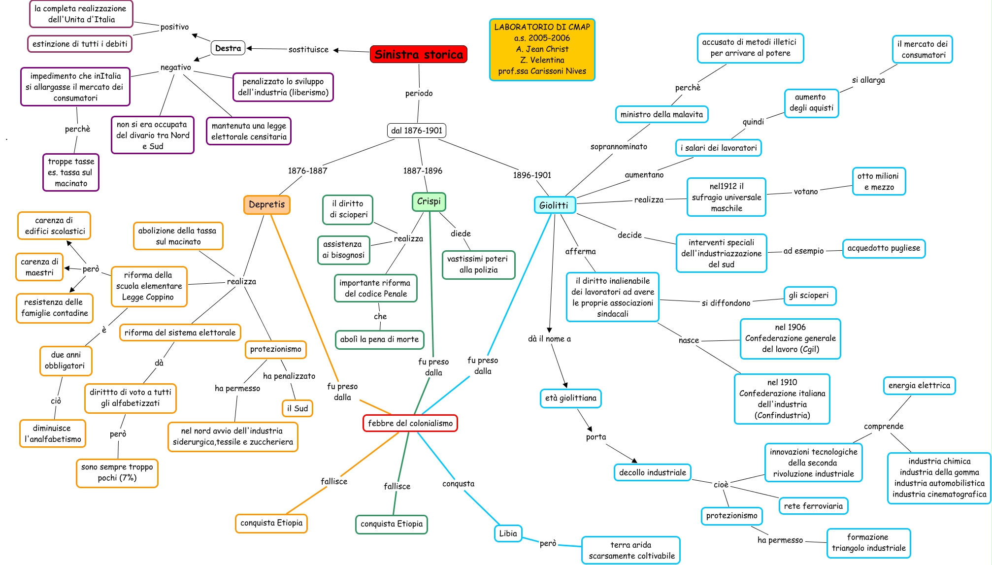 Sinistra storica, nel1912 il sufragio universale maschile votano otto milioni e mezzo, Destra positivo estinzione di tutti i debiti, ministro della malavita perchè accusato di metodi illetici per arrivare al potere, rete ferroviaria cioè innovazioni tecnologiche della seconda rivoluzione industriale, dirittto di voto a tutti gli alfabetizzati però sono sempre troppo pochi (7%), Destra negativo penalizzato lo sviluppo dell'industria (liberismo), Giolitti aumentano i salari dei lavoratori, febbre del colonialismo fallisce conquista Etiopia, Depretis realizza riforma della scuola elementare Legge Coppino, febbre del colonialismo fu preso dalla Crispi