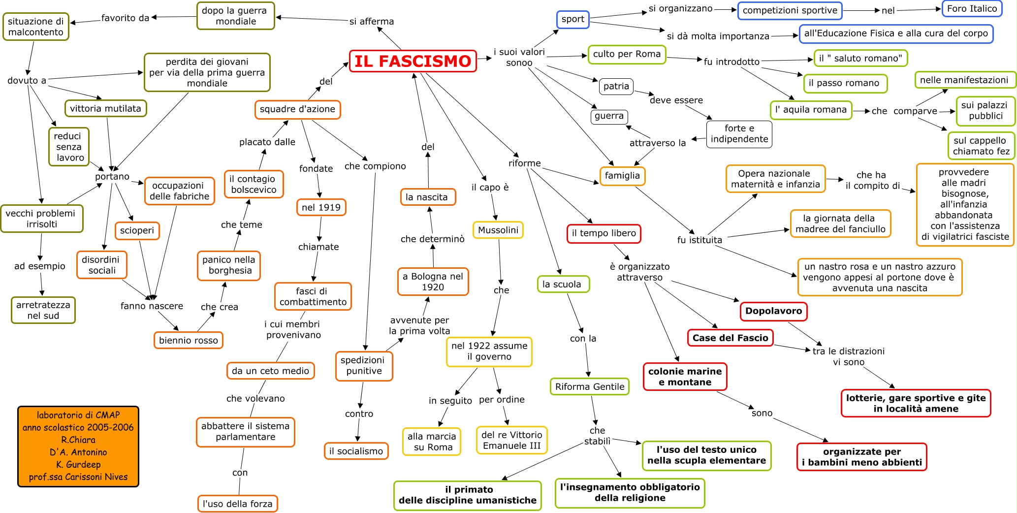fascismo, situazione di malcontento dovuto a vecchi problemi irrisolti, il tempo libero è organizzato attraverso Case del Fascio, l' aquila romana che comparve nelle manifestazioni, panico nella borghesia che teme il contagio bolscevico, squadre d'azione fondate nel 1919, situazione di malcontento dovuto a reduci senza lavoro, Riforma Gentile che stabilì l'insegnamento obbligatorio della religione, nel 1922 assume il governo per ordine del re Vittorio Emanuele III, il tempo libero è organizzato attraverso colonie marine e montane, famiglia fu istituita Opera nazionale maternità e infanzia