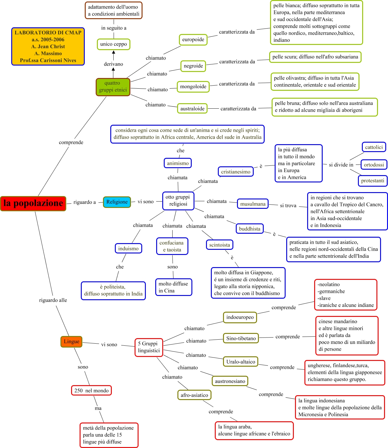 La popolazione, otto gruppi religiosi chiamata confuciana e taoista, la più diffusa in tutto il mondo ma in particolare in Europa e in America si divide in ortodossi, australoide caratterizzata da pelle bruna; diffuso solo nell'area australiana e ridotto ad alcune migliaia di aborigeni, musulmana si trova in regioni che si trovano a cavallo del Tropico del Cancro, nell'Africa settentrionale in Asia sud-occidentale e in Indonesia, 5 Gruppi linguistici chiamato indoeuropeo, pelle bianca; diffuso soprattutto in tutta Europa, nella parte mediterranea e sud occidentale dell'Asia; comprende molti sottogruppi come quello nordico, mediterraneo,baltico, indiano caratterizzata da europoide, la lingua indonesiana e molte lingue della popolazione della Micronesia e Polinesia comprende austronesiano, cristianesimo è la più diffusa in tutto il mondo ma in particolare in Europa e in America, scintoista è molto diffusa in Giappone, é un insieme di credenze e riti, legato alla storia nipponica, che convive con il buddhismo, la più diffusa in tutto il mondo ma in particolare in Europa e in America si divide in protestanti