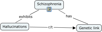 lukach Schizophrenia, Schizophrenia exhibits Hallucinations, Schizophrenia has Genetic link, Hallucinations r/t Genetic link