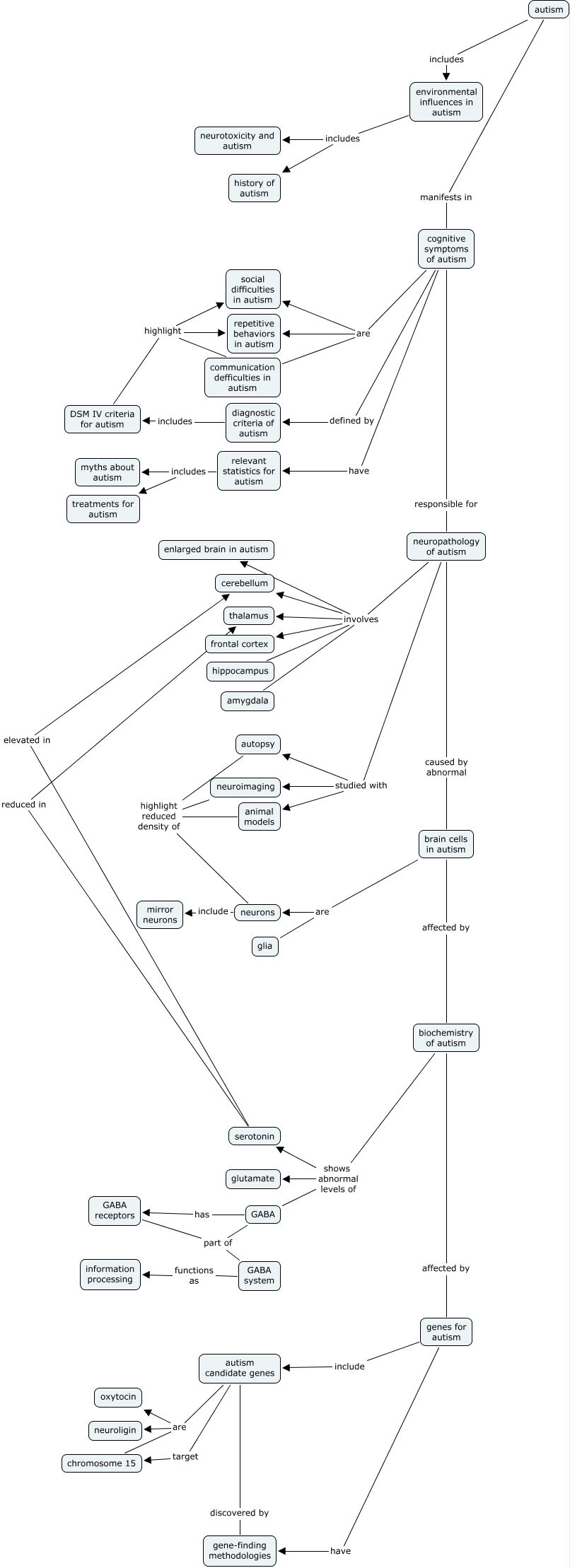 Autism Level 2, neuroimaging highlight reduced density of neurons, cognitive symptoms of autism defined by diagnostic criteria of autism, autism candidate genes are oxytocin, genes for autism have gene-finding methodologies, DSM IV criteria for autism highlight social difficulties in autism, neuropathology of autism studied with animal models, autism candidate genes are neuroligin, neuropathology of autism studied with autopsy, neuropathology of autism caused by abnormal brain cells in autism, environmental influences in autism includes history of autism