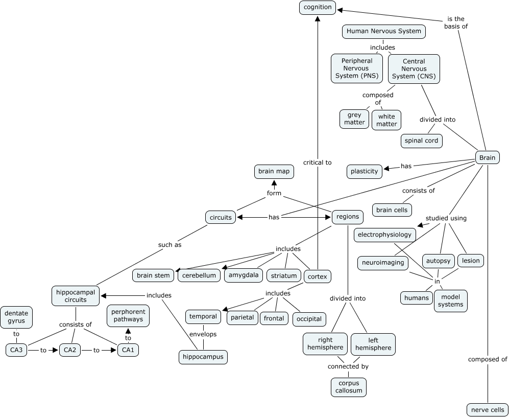 Brain Level 2, regions divided into left hemisphere, regions includes brain stem, dentate gyrus to CA3, regions divided into right hemisphere, Brain has regions, cortex includes parietal, autopsy in model systems, hippocampal circuits consists of CA1, regions includes cerebellum, hippocampal circuits consists of CA2