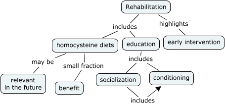 Autism Rehab - JDN Rev, socialization includes conditioning, education includes socialization, Rehabilitation includes education, education includes conditioning, homocysteine diets may be relevant in the future, Rehabilitation includes homocysteine diets, homocysteine diets small fraction benefit, Rehabilitation highlights early intervention
