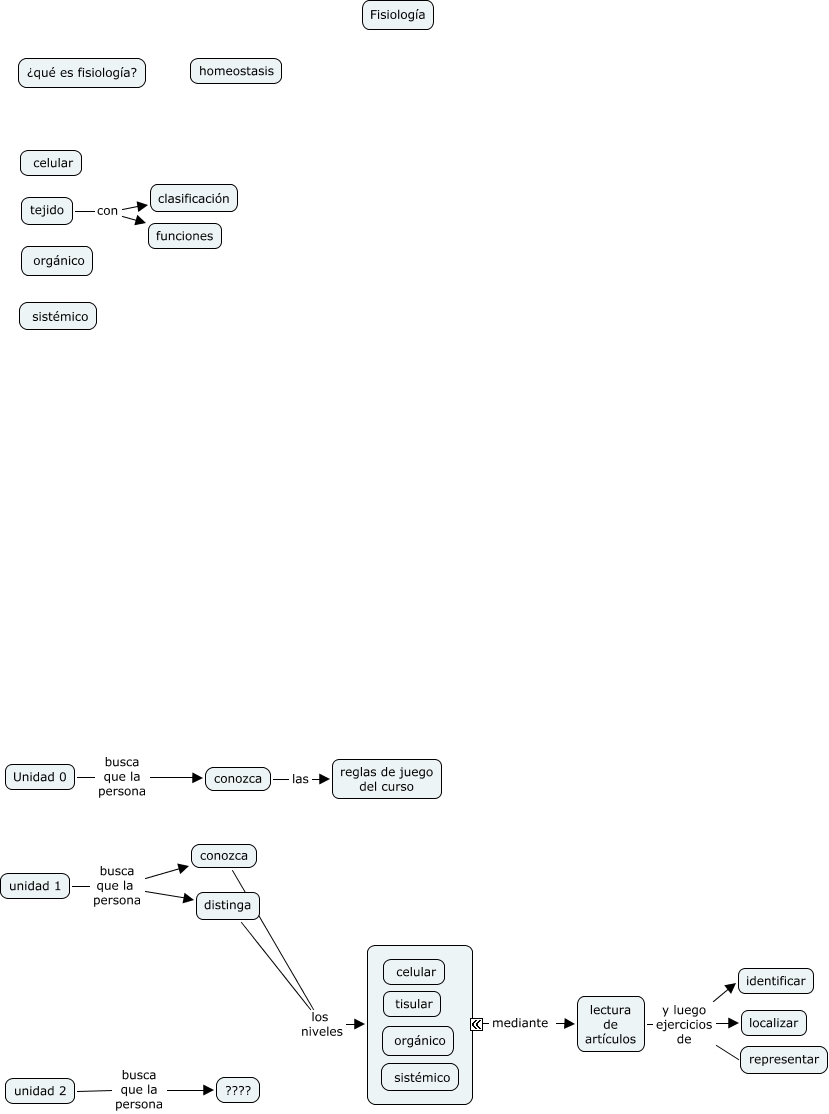 mapa Fisiología, tejido con clasificación, lectura de artículos y luego ejercicios de representar, unidad 2 busca que la persona ????, lectura de artículos y luego ejercicios de identificar, distinga los niveles de organización biológica del cuerpo humano, tejido con funciones, conozca los niveles de organización biológica del cuerpo humano, unidad 1 busca que la persona distinga, de organización biológica del cuerpo humano mediante lectura de artículos, conozca las reglas de juego del curso