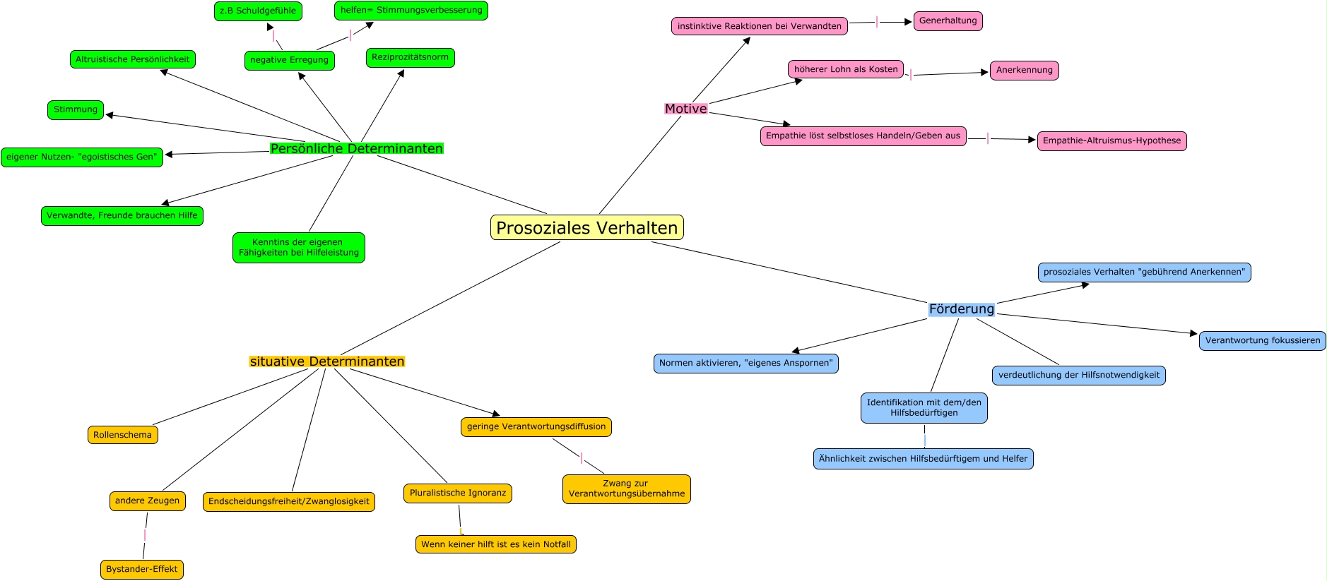KapitelPrSoz Gruppe4, Prosoziales Verhalten situative Determinanten Endscheidungsfreiheit/Zwanglosigkeit, Prosoziales Verhalten situative Determinanten andere Zeugen, Prosoziales Verhalten situative Determinanten geringe Verantwortungsdiffusion, geringe Verantwortungsdiffusion Zwang zur Verantwortungsübernahme, Pluralistische Ignoranz Wenn keiner hilft ist es kein Notfall, Prosoziales Verhalten Persönliche Determinanten Altruistische Persönlichkeit, Prosoziales Verhalten situative Determinanten Rollenschema, Prosoziales Verhalten Persönliche Determinanten eigener Nutzen- "egoistisches Gen", Prosoziales Verhalten Förderung Normen aktivieren, "eigenes Anspornen", Prosoziales Verhalten situative Determinanten Pluralistische Ignoranz