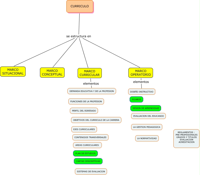 Este mapa conceptual tiene información relacionada a: GRUPO3_EST_CURRICULO, CURRICULO se estructura en MARCO OPERATORIO, CURRICULO se estructura en MARCO CURRICULAR, MARCO OPERATORIO elementos DISEÑO INSTRUCTIVO, CURRICULO se estructura en MARCO CONCEPTUAL, CURRICULO se estructura en MARCO SITUACIONAL, MARCO CURRICULAR elementos DEMANDA EDUCATIVA Y DE LA PROFESION