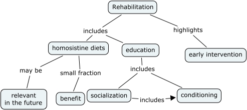 Rehab JDN Rev, socialization includes conditioning, Rehabilitation includes education, education includes socialization, homosistine diets may be relevant in the future, education includes conditioning, Rehabilitation includes homosistine diets, Rehabilitation highlights early intervention, homosistine diets small fraction benefit