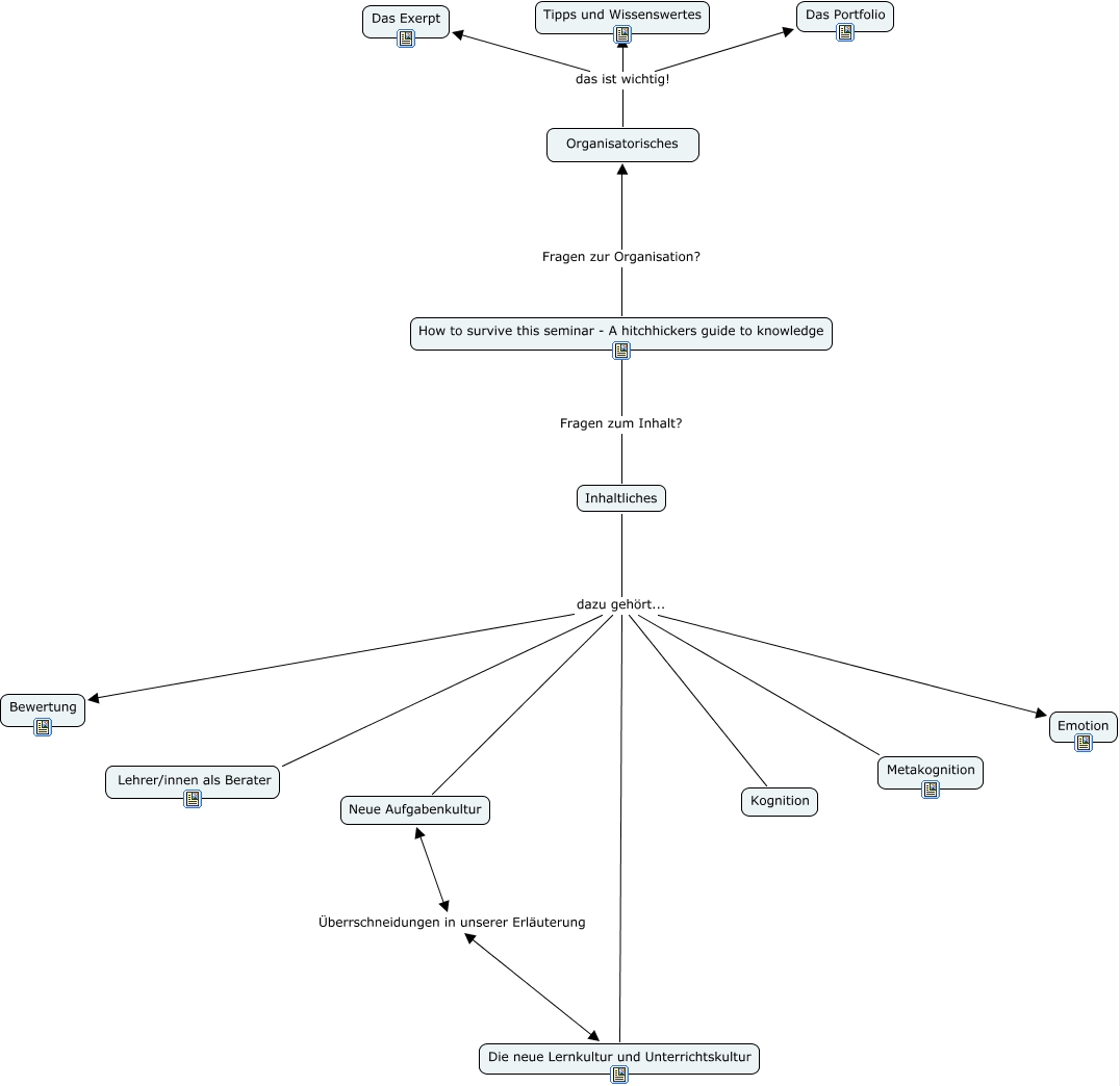 Guide to this Seminar, Organisatorisches das ist wichtig! Das Portfolio, How to survive this seminar - A hitchhickers guide to knowledge Fragen zum Inhalt? Inhaltliches, Inhaltliches dazu gehört... Emotion, Inhaltliches dazu gehört... Die neue Lernkultur und Unterrichtskultur, Organisatorisches das ist wichtig! Das Exerpt, Inhaltliches dazu gehört... Metakognition, Inhaltliches dazu gehört... Kognition, Organisatorisches das ist wichtig! Tipps und Wissenswertes, Inhaltliches dazu gehört... Neue Aufgabenkultur, How to survive this seminar - A hitchhickers guide to knowledge Fragen zur Organisation? Organisatorisches