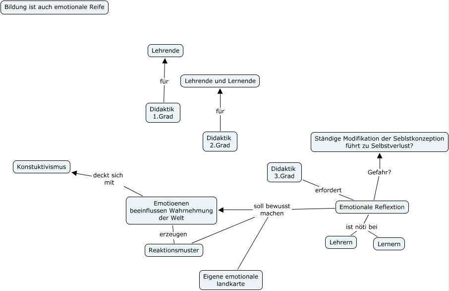Unbenannt 1, Didaktik 3.Grad erfordert Emotionale Reflextion, Emotionale Reflextion ist nöti bei Lehrern, Emotionale Reflextion soll bewusst machen Emotioenen beeinflussen Wahrnehmung der Welt, Emotionale Reflextion soll bewusst machen Eigene emotionale landkarte, Emotioenen beeinflussen Wahrnehmung der Welt deckt sich mit Konstuktivismus, Emotioenen beeinflussen Wahrnehmung der Welt erzeugen Reaktionsmuster, Didaktik 1.Grad für Lehrende, Didaktik 2.Grad für Lehrende und Lernende, Emotionale Reflextion ist nöti bei Lernern, Emotionale Reflextion soll bewusst machen Reaktionsmuster