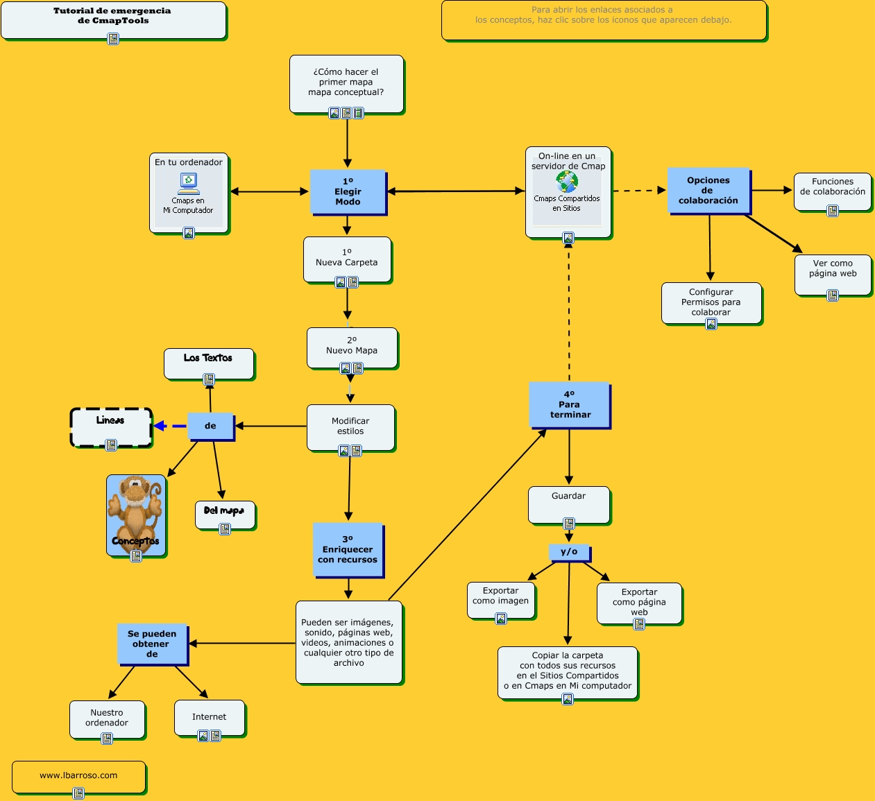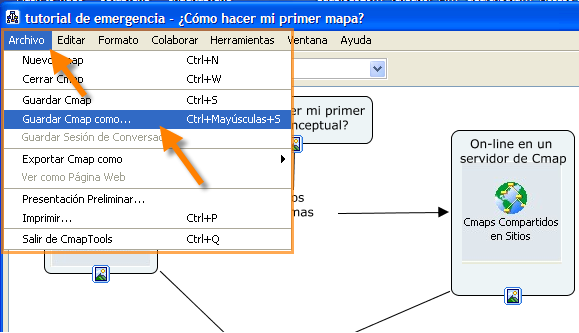 Este mapa conceptual tiene información relacionada a: tutorial de emergencia, Pueden ser imágenes, sonido, páginas web, videos, animaciones o cualquier otro tipo de archivo Se pueden obtener de Internet, On-line en un servidor de Cmap Opciones de colaboración Funciones de colaboración, On-line en un servidor de Cmap 1º Elegir Modo En tu ordenador, ¿Cómo hacer el primer mapa mapa conceptual? 1º Elegir Modo 1º Nueva Carpeta, Pueden ser imágenes, sonido, páginas web, videos, animaciones o cualquier otro tipo de archivo 4º Para terminar On-line en un servidor de Cmap, Modificar estilos de Conceptos, Modificar estilos de Del mapa, Guardar y/o Exportar como imagen, 2º Nuevo Mapa Modificar estilos, Modificar estilos de Los Textos