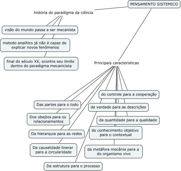 Este Mapa Conceitual tem informações relacionadas a: PS, PENSAMENTO SISTEMICO Principais caracteristicas Da causalidade linerar para a circularidade, PENSAMENTO SISTEMICO Principais caracteristicas da quantidade para a qualidade, PENSAMENTO SISTEMICO história do paradigma da ciência metodo analítico já não é capaz de explicar novos fenômenos, PENSAMENTO SISTEMICO história do paradigma da ciência visão do mundo passa a ser mecanista, PENSAMENTO SISTEMICO Principais caracteristicas Das partes para o todo, PENSAMENTO SISTEMICO história do paradigma da ciência final do século XX, econtra seu limite dentro do paradigma mecanicista, PENSAMENTO SISTEMICO Principais caracteristicas do controle para a cooperação, PENSAMENTO SISTEMICO Principais caracteristicas Da estrutura para o processo, PENSAMENTO SISTEMICO Principais caracteristicas Da hierarquia para as redes, PENSAMENTO SISTEMICO Principais caracteristicas da verdade para as descrições