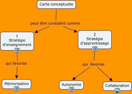 This Concept Map has information related to: no1, 1 Stratégie d'enseignement qui favorise Mémorisation, 2 Stratégie d'apprentissage qui favorise Autonomie, 2 Stratégie d'apprentissage qui favorise Collaboration, Carte conceptuelle peut être considéré comme 2 Stratégie d'apprentissage, Carte conceptuelle peut être considéré comme 1 Stratégie d'enseignement