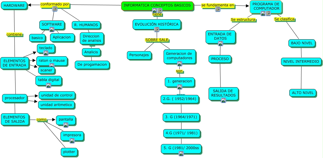 zulema, ELEMENTOS DE ENTRADA ???? tabla digital, HARDWARE contiene ELEMENTOS DE ENTRADA, R. HUMANOS ???? Direccion de analisis, PROCESO ???? SALIDA DE RESULTADOS, 3. G (1964/1971) ???? 5. G (1981/ 2000ss, SOFTWARE ???? basico, PROGRAMA DE COMPUTADOR Se clasifica BAJO NIVEL, ELEMENTOS DE SALIDA como impresora, BAJO NIVEL ???? NIVEL INTERMEDIO, procesador ???? unidad aritmetico