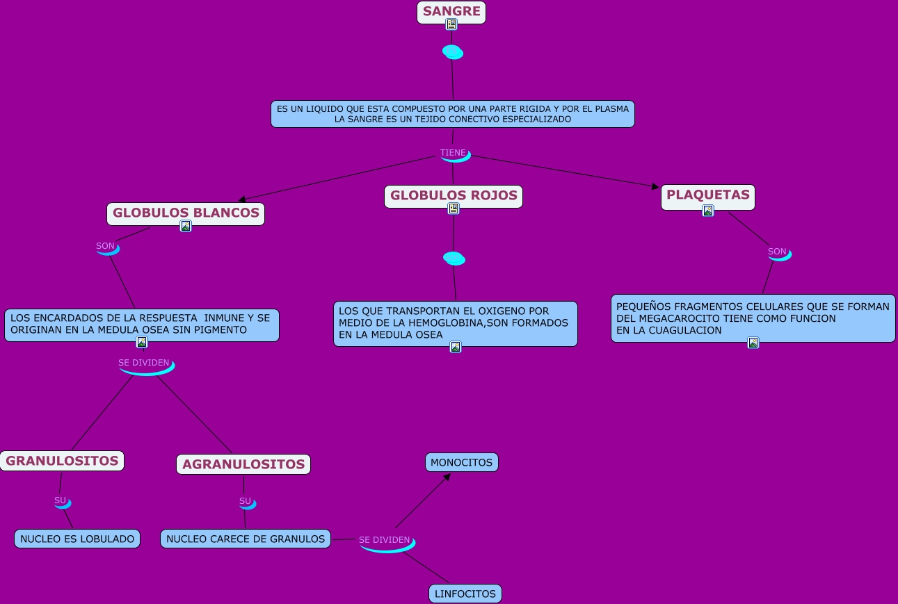 Este Cmap, tiene información relacionada con: SANGRE, AGRANULOSITOS SU NUCLEO CARECE DE GRANULOS, GLOBULOS BLANCOS SON LOS ENCARDADOS DE LA RESPUESTA INMUNE Y SE ORIGINAN EN LA MEDULA OSEA SIN PIGMENTO, PLAQUETAS SON PEQUEÑOS FRAGMENTOS CELULARES QUE SE FORMAN DEL MEGACAROCITO TIENE COMO FUNCION EN LA CUAGULACION, ES UN LIQUIDO QUE ESTA COMPUESTO POR UNA PARTE RIGIDA Y POR EL PLASMA LA SANGRE ES UN TEJIDO CONECTIVO ESPECIALIZADO TIENE GLOBULOS ROJOS, ES UN LIQUIDO QUE ESTA COMPUESTO POR UNA PARTE RIGIDA Y POR EL PLASMA LA SANGRE ES UN TEJIDO CONECTIVO ESPECIALIZADO TIENE GLOBULOS BLANCOS, SANGRE ES ES UN LIQUIDO QUE ESTA COMPUESTO POR UNA PARTE RIGIDA Y POR EL PLASMA LA SANGRE ES UN TEJIDO CONECTIVO ESPECIALIZADO, LOS ENCARDADOS DE LA RESPUESTA INMUNE Y SE ORIGINAN EN LA MEDULA OSEA SIN PIGMENTO SE DIVIDEN AGRANULOSITOS, NUCLEO CARECE DE GRANULOS SE DIVIDEN MONOCITOS, GRANULOSITOS SU NUCLEO ES LOBULADO, GLOBULOS ROJOS son LOS QUE TRANSPORTAN EL OXIGENO POR MEDIO DE LA HEMOGLOBINA,SON FORMADOS EN LA MEDULA OSEA, NUCLEO CARECE DE GRANULOS SE DIVIDEN LINFOCITOS, LOS ENCARDADOS DE LA RESPUESTA INMUNE Y SE ORIGINAN EN LA MEDULA OSEA SIN PIGMENTO SE DIVIDEN GRANULOSITOS, ES UN LIQUIDO QUE ESTA COMPUESTO POR UNA PARTE RIGIDA Y POR EL PLASMA LA SANGRE ES UN TEJIDO CONECTIVO ESPECIALIZADO TIENE PLAQUETAS