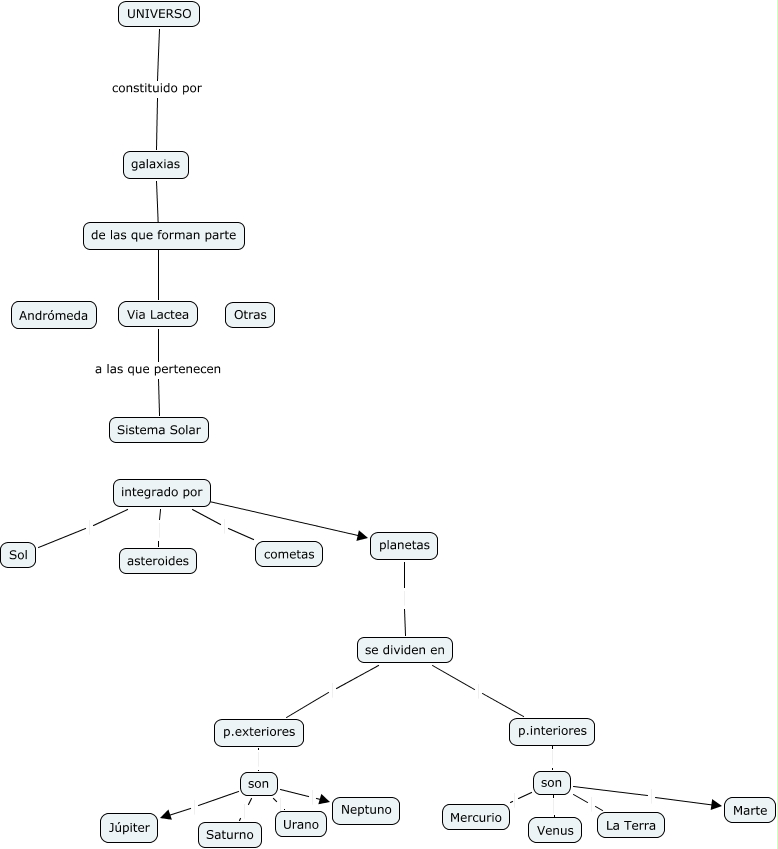 Este mapa conceptual tiene información relacionada a: Maria Suárez Salvado, planetas se dividen en, son La Terra, son Neptuno, integrado por Sol, son Venus, son Marte, integrado por asteroides, son Saturno, galaxias ???? Via Lactea, UNIVERSO constituido por galaxias